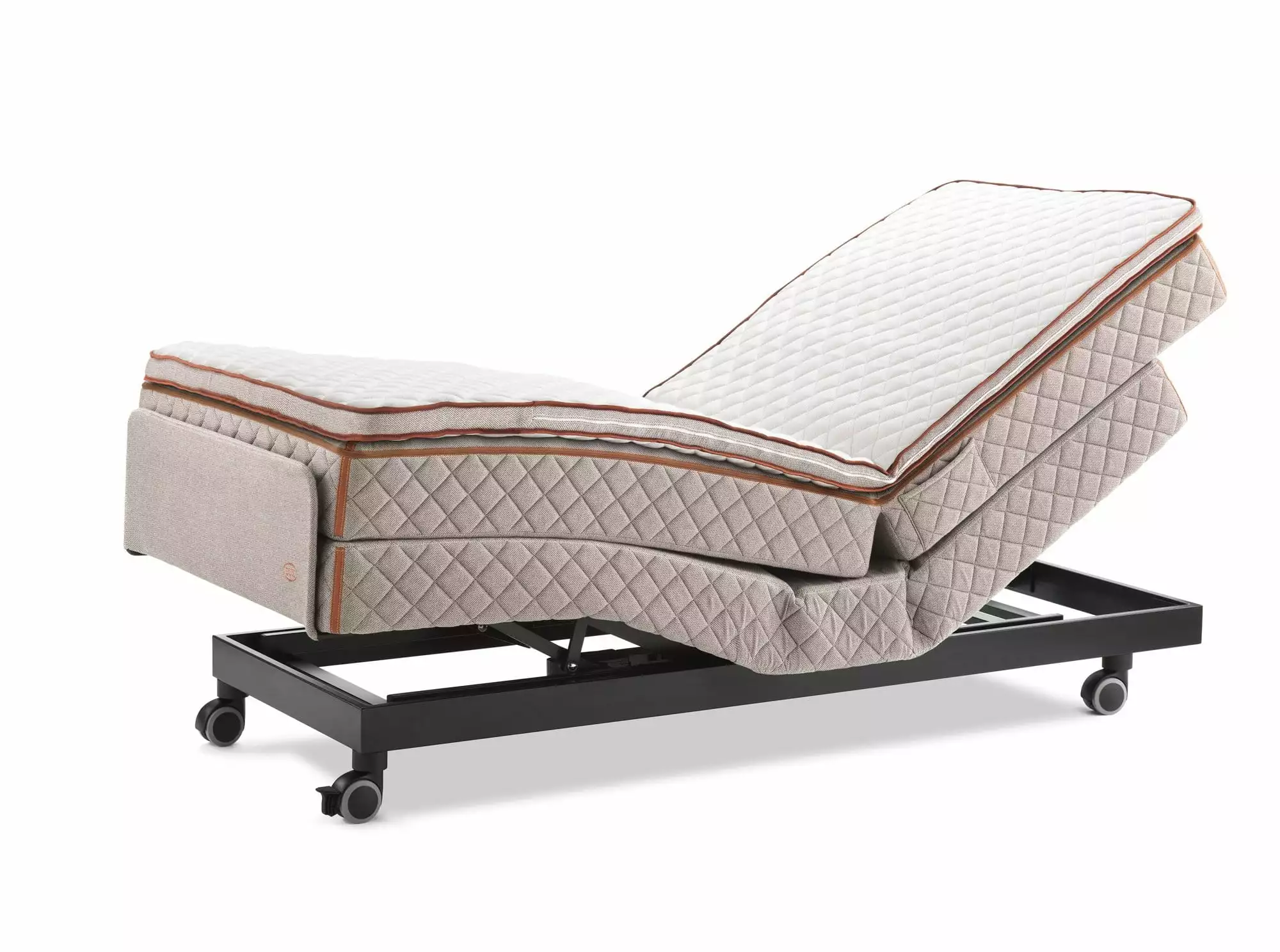 Ställbar säng med naturlatex, bomullsvadd och två lager av 12 cm höga spiralsystem.