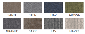| Färg | Sand, Sten, Hav, Mossa, Granit, Bark |