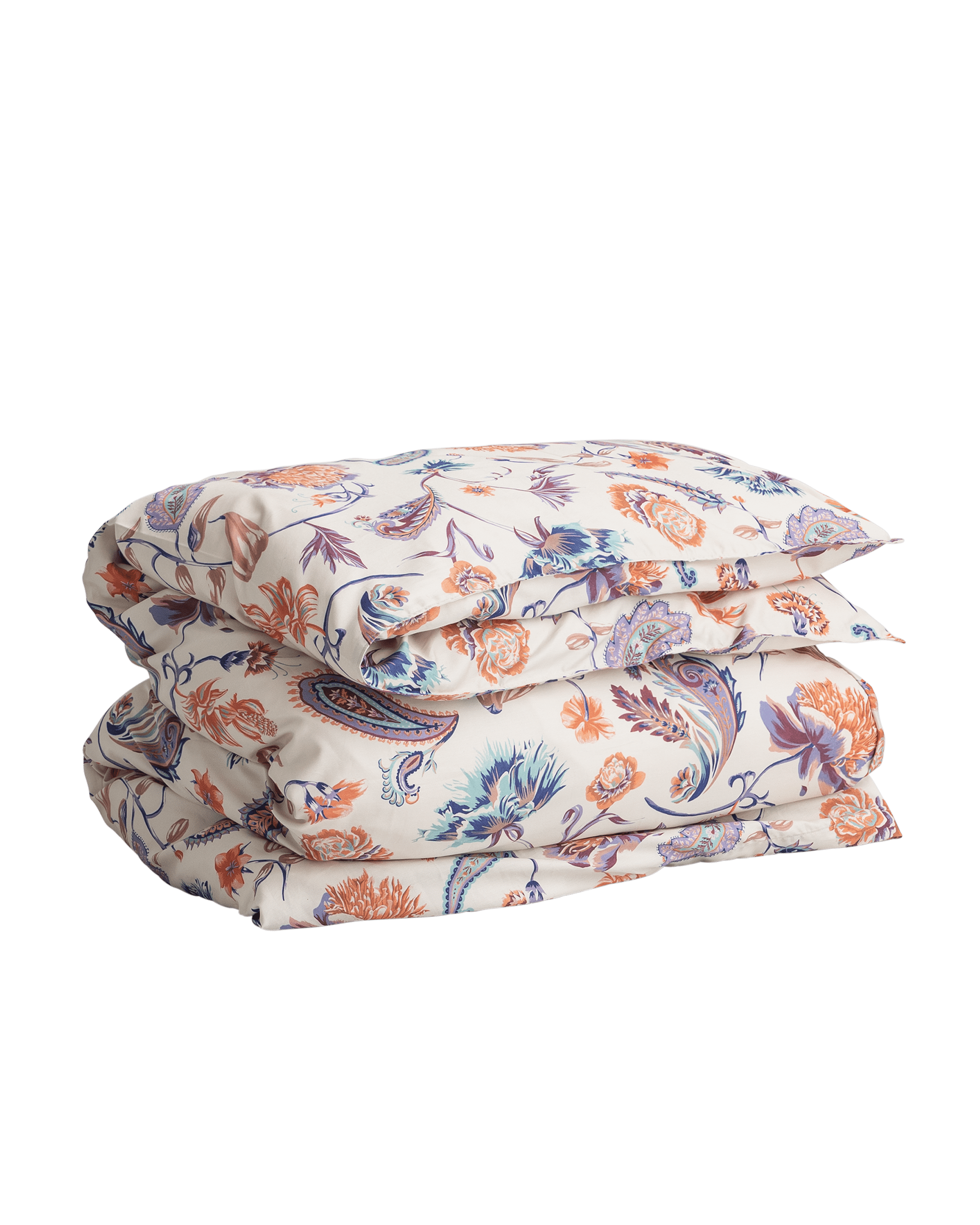Handmålat allovermönster, tryckt på kammad egyptisk bomull. Påslakanet har en diskret plastdragkedja från kant till kant. Örngott medföljer