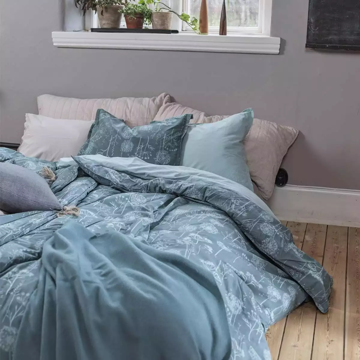 Vi presenterar även en ny ekologisk kvalitet i Gripsholms bäddsortiment. Tvättad bomull är en mjuk kvalitet som ger färgerna en vacker, matt och modern känsla. Sängkläderna blir mer och mer behagliga och karaktäristiska för varje tvätt och vingen på kuddarna framhäver den tvättade looken.