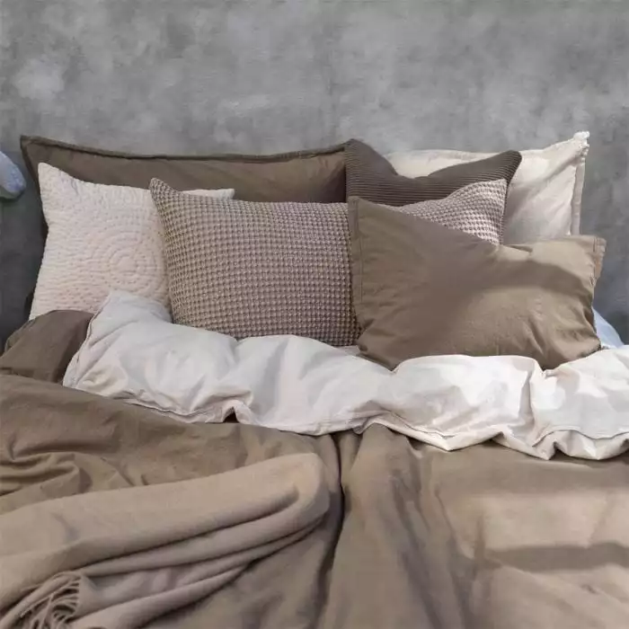 Vi presenterar även en ny ekologisk kvalitet i Gripsholms bäddsortiment. Tvättad bomull är en mjuk kvalitet som ger färgerna en vacker, matt och modern känsla. Sängkläderna blir mer och mer behagliga och karaktäristiska för varje tvätt och vingen på kuddarna framhäver den tvättade looken.