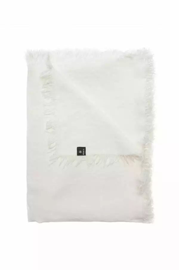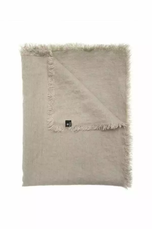 Merlin Pläd 130×170 är en pläd i kypertvävt linne med invävda ulltrådar. Vävningen ger ett melerat utseende. Pläden är mjuk och varm och har lång frans runtom.