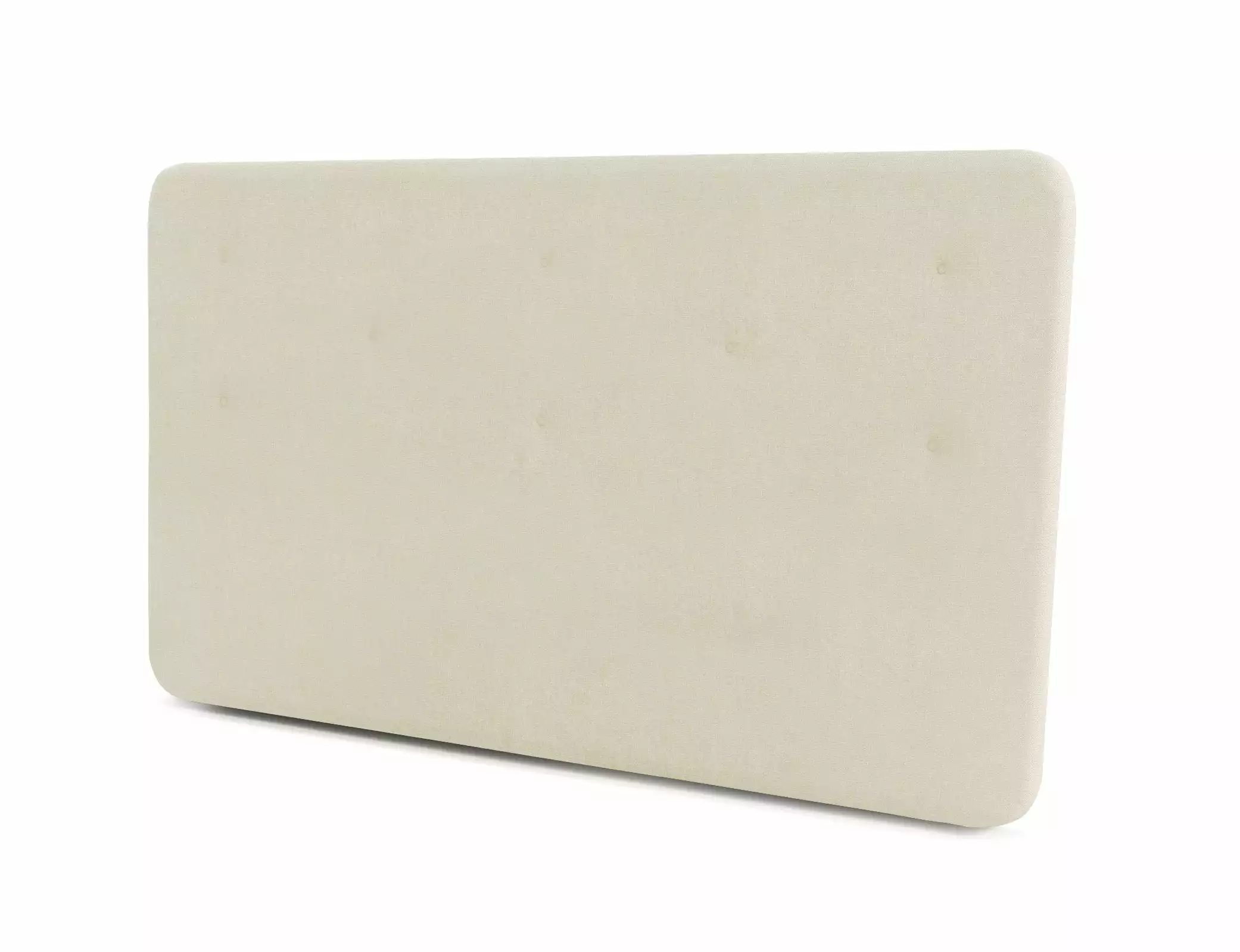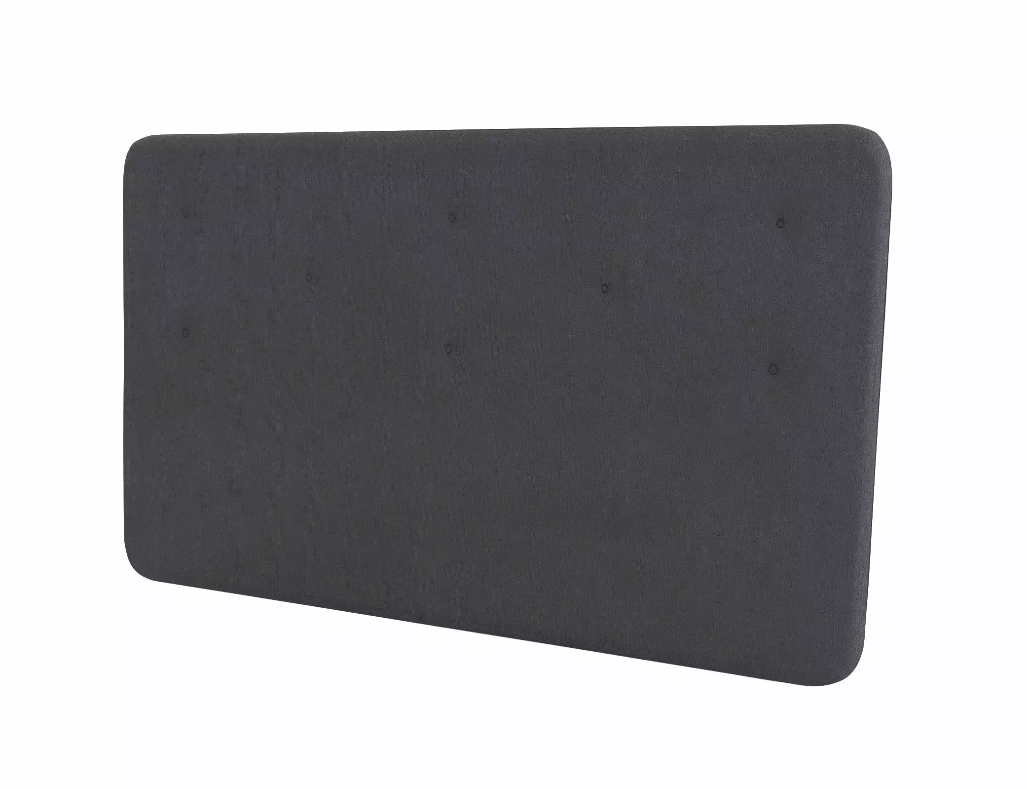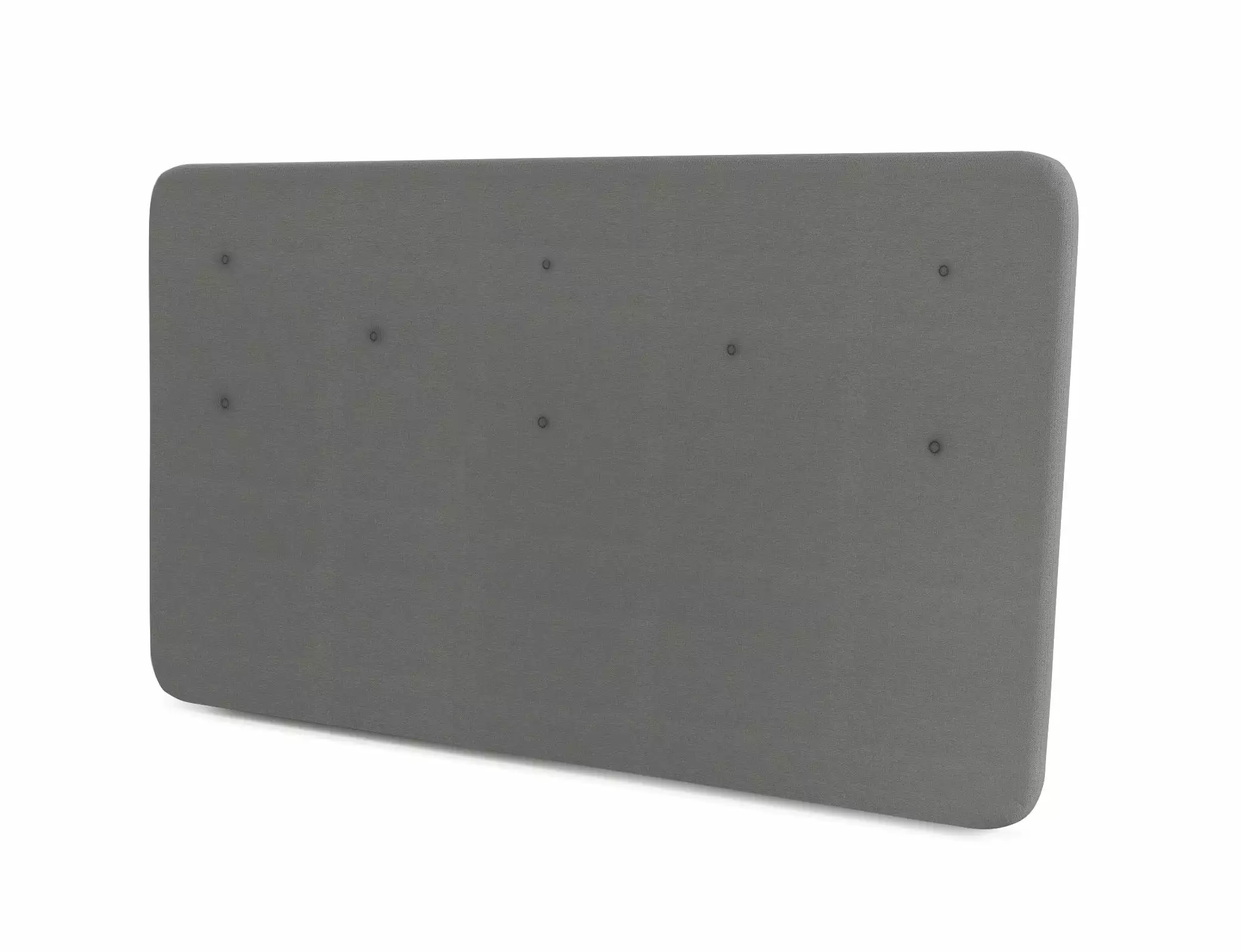 En textilbeklädd, nätt gavel i liggande format med knappar.