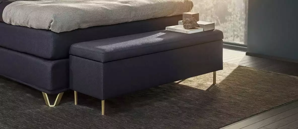 Exklusiv textilklädd ottoman Mått: B150 H:31,5 D38 cm