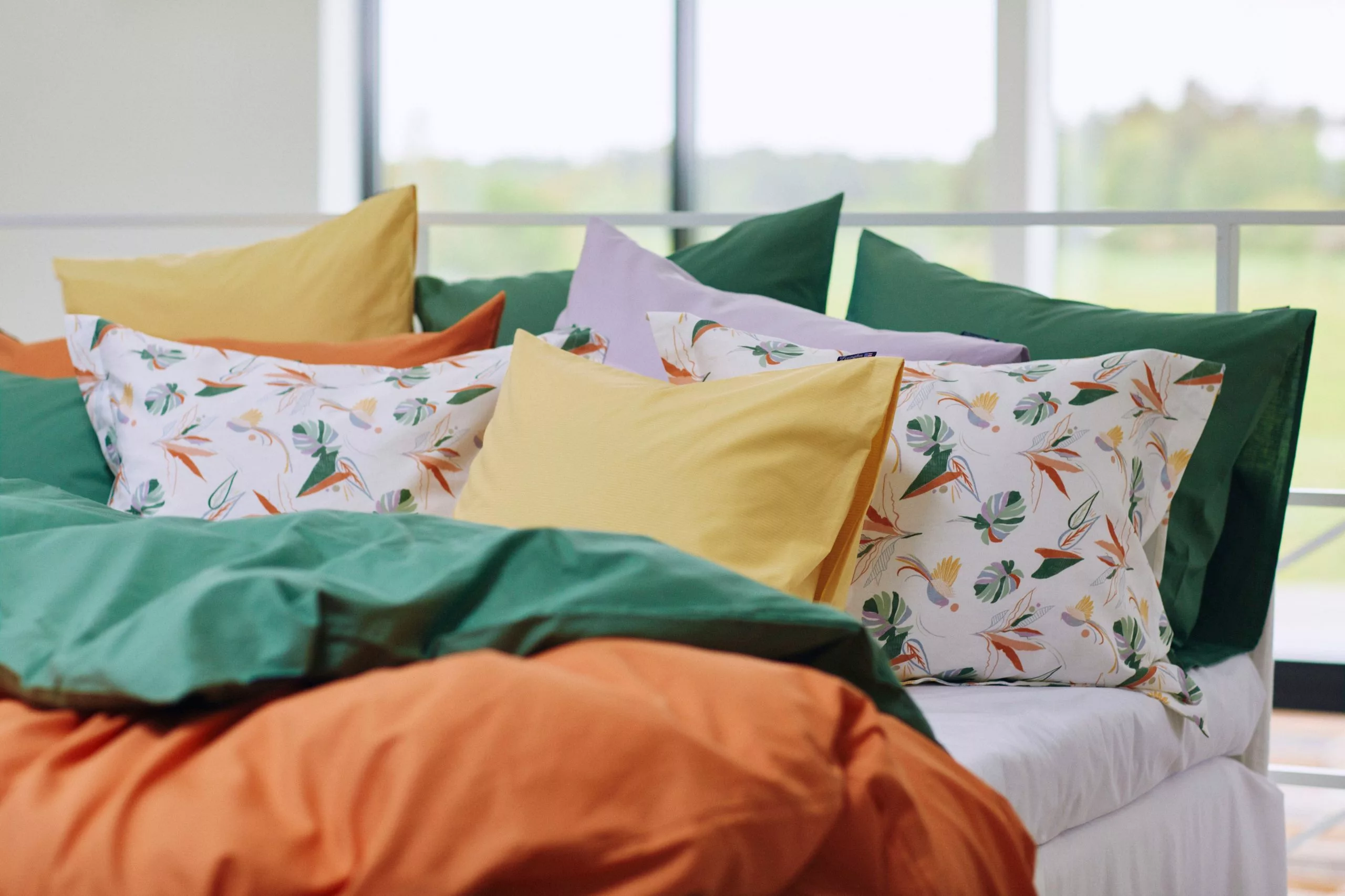 Detta örngott är tillverkat i Portugal av OEKO-TEX®-certifierad ren bomullssatin och har ett märkesexklusivt tryckt mönster över hela. Ytterligare detaljer för det här örngottet i bomull omfattar omlottstängning och kant.