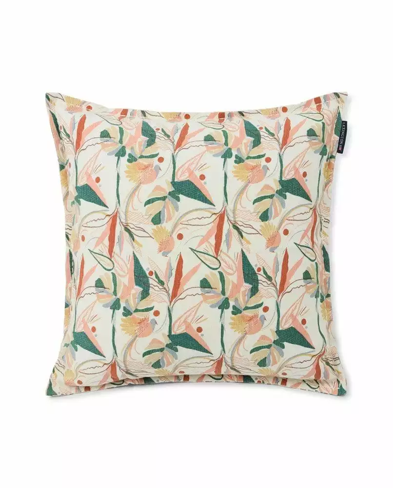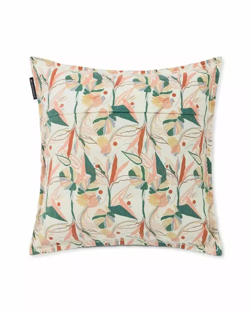 Detta kuddfodral är tillverkat i en blandning av linne och bomull och har ett tryckt blommönster över hela. Detta kuddfodral i en blandning av linne och bomull har färgmatchande grov söm längs kanterna och en dold dragkedja på baksidan.