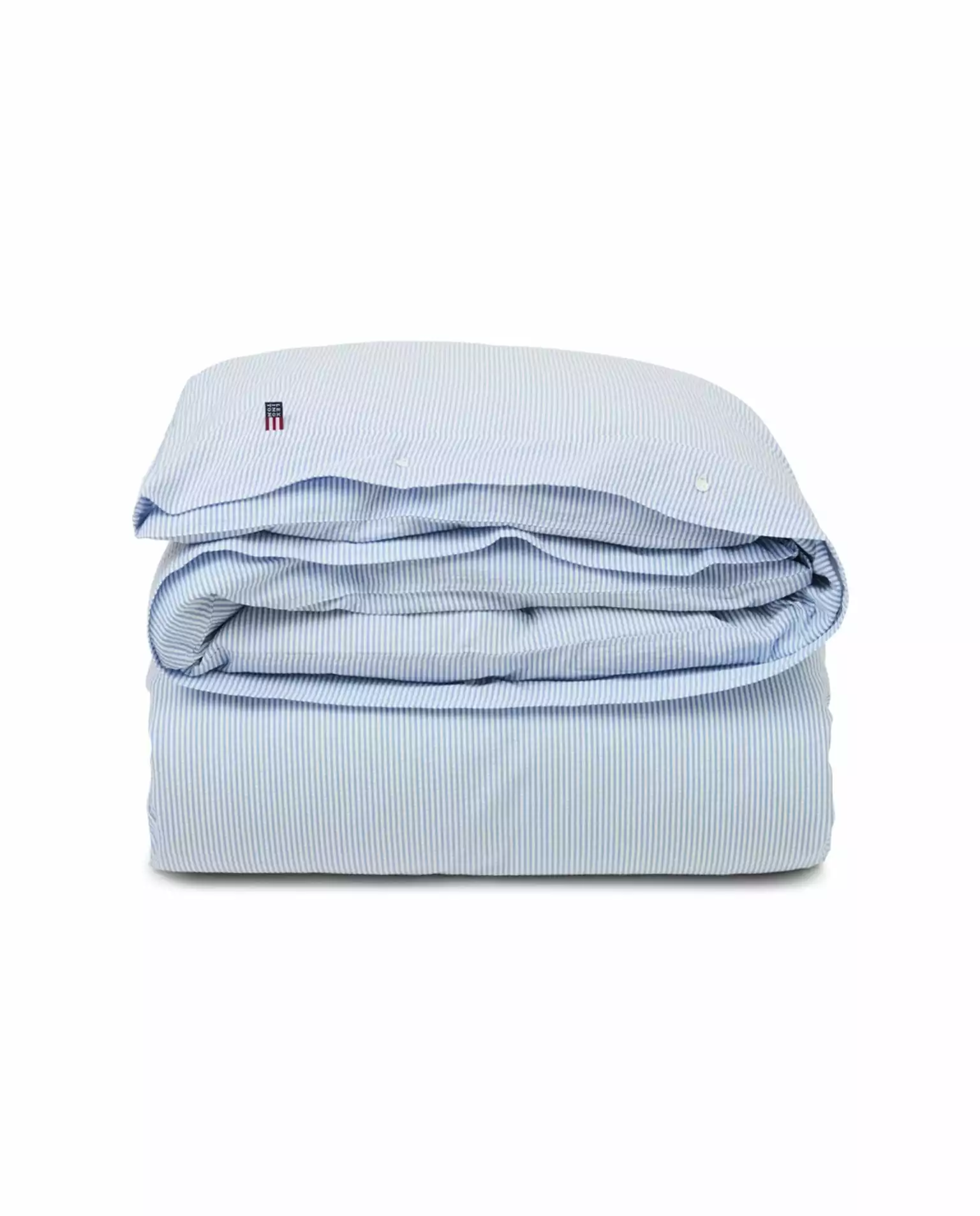 Bomullspåslakanet med sin skrynkliga look är tillverkat i OEKO-TEX®-certifierat seersuckertyg. Påslakanet i bomull har ränder i en blandning av beige och vitt / grå och vitt och kompletteras av Lexingtonflaggan och logotyppräglade gummiknappar upptill.