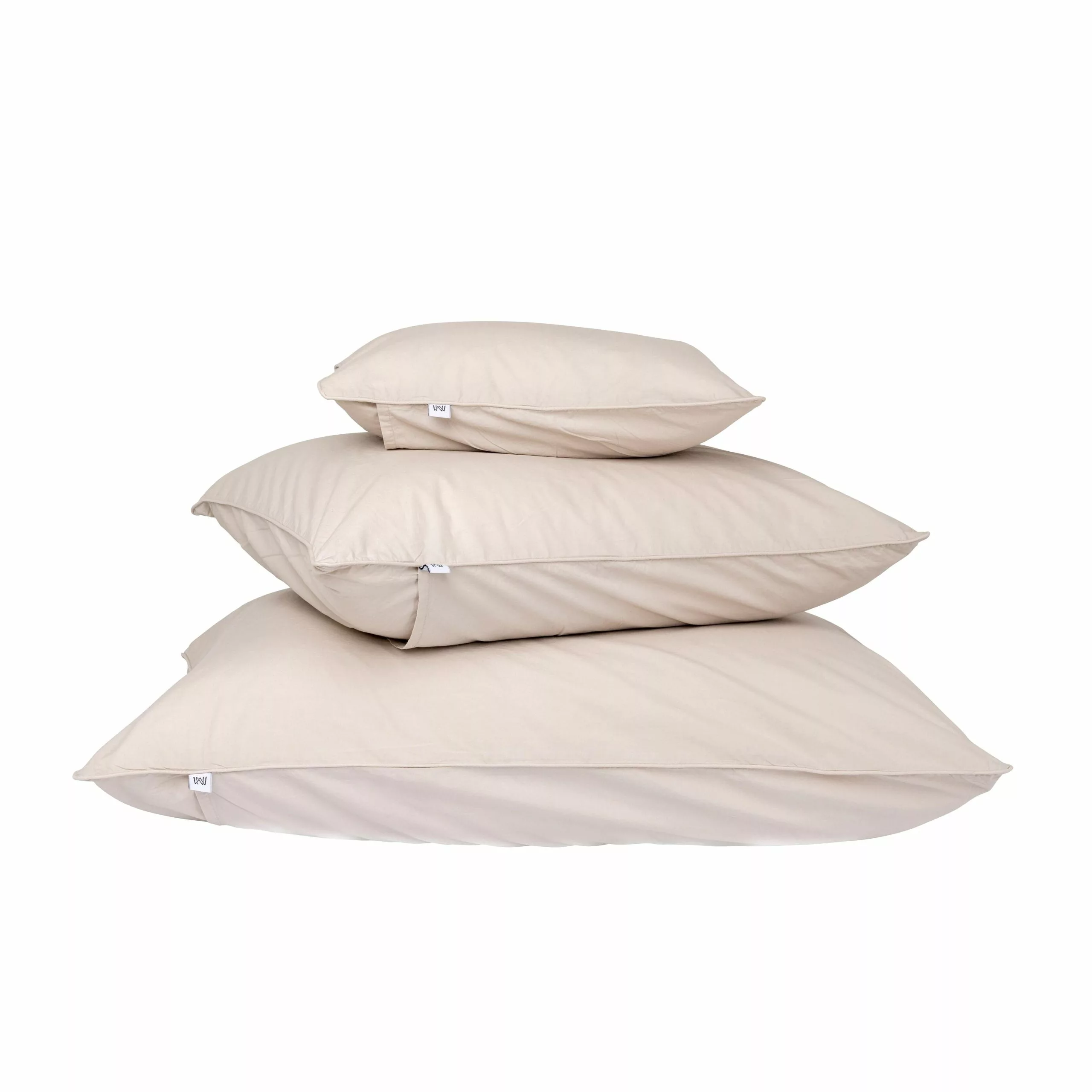 Örngott i borstad percale tillverkade av finkammad bomull. Trådtäthet 200tc. Stilren och minimalistisk design i tidlösa färger. Den borstade percalen lämnar en mjuk och len känsla och ger sängkläderna ett lätt skrynkligt utseende. Örngottet har cording längs kanterna och överlappning på baksidan.