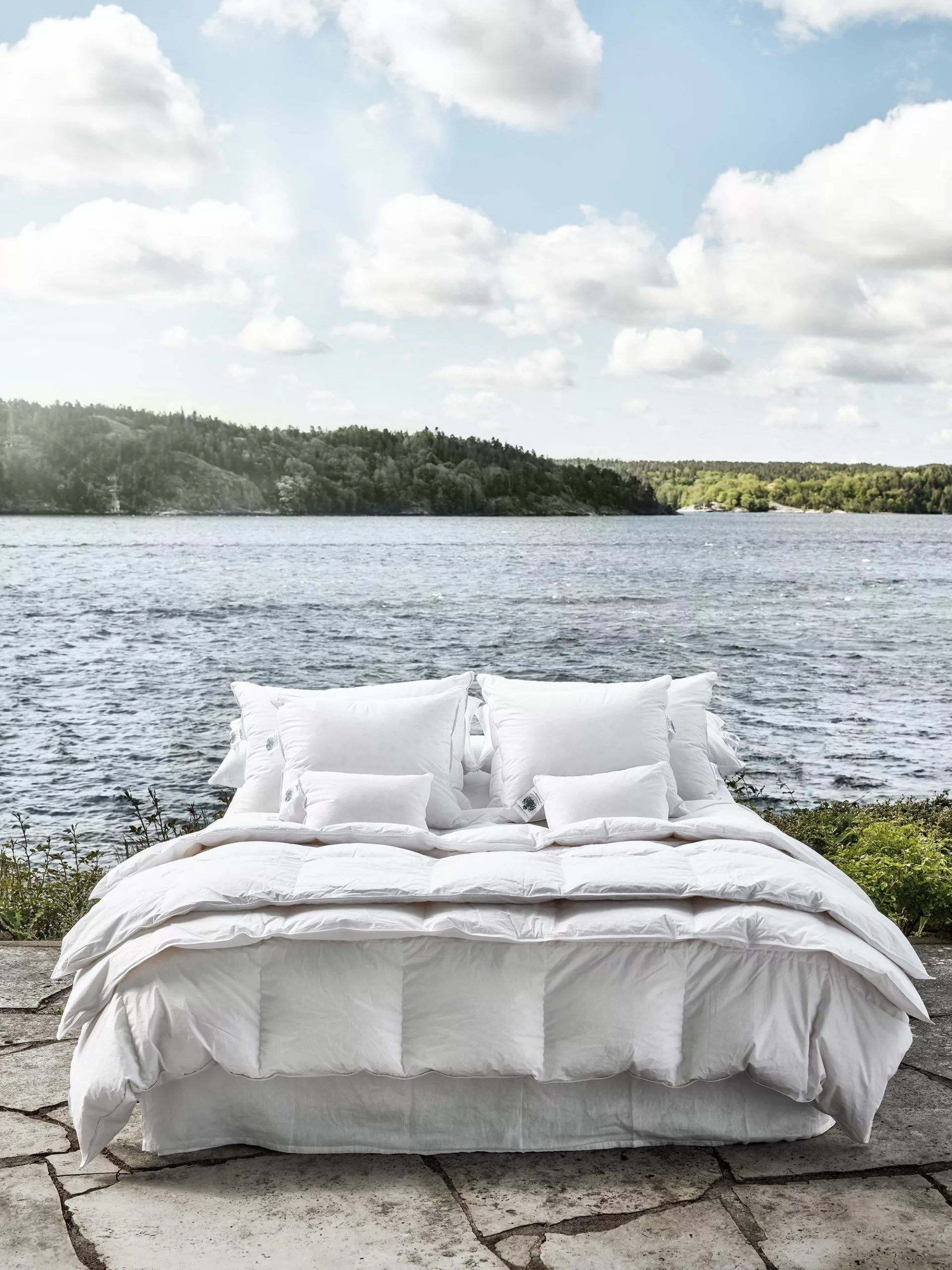 Mille Notti´s duntäcke Natura av högsta och renaste kvalitet passar dig som längtar efter den där lyxigt mjuka och extra fluffiga känslan. Täcket är fyllt av vitt förstklassigt gåsdun från Europa. Fördelningen 90 procent gåsdun och 10 procent gåsfjäder gör täcket sagolikt skönt och fluffigt. Du kan dessutom svepa om dig med gott samvete: Alla Mille Notti´s dunprodukter är certifierade för att de framställts på ett etiskt sätt, vilket garanterar att dunet inte plockats från levande fåglar samt att det inte förekommit tvångsmatning i uppfödningen av fåglarna. Mille Notti dun tillverkas i Polen på en mindre fabrik med noggranna kontroller av både kvalitet och inköp av material. Tyget är vävt av finaste bomullscambric, en extra tunn tråd som ger ett tätare, mer hållbart och följsamt tyg. Alla täcken har bärigheten 10+ vilket innebär att de är lätta, luftiga och isolerar bra. Välj mellan värmegraderna svalt, medium eller varmt. De svala modellerna är genomstickade. Modellerna medium och varmt är sydda med mellanväggar. Täcket är packat i en stilren tygväska.