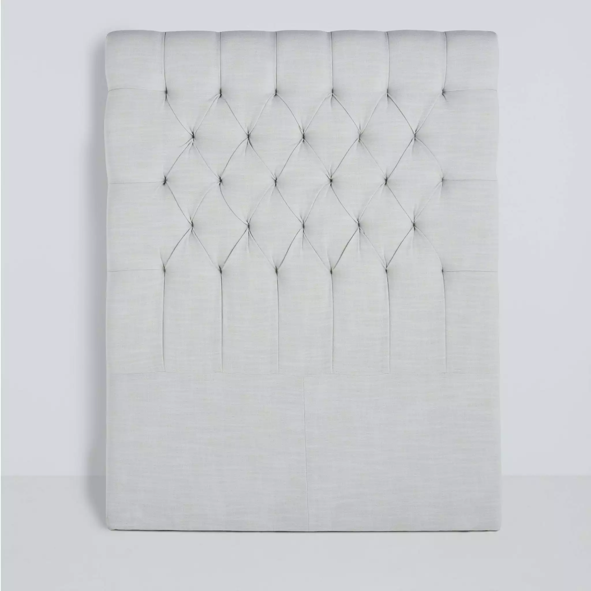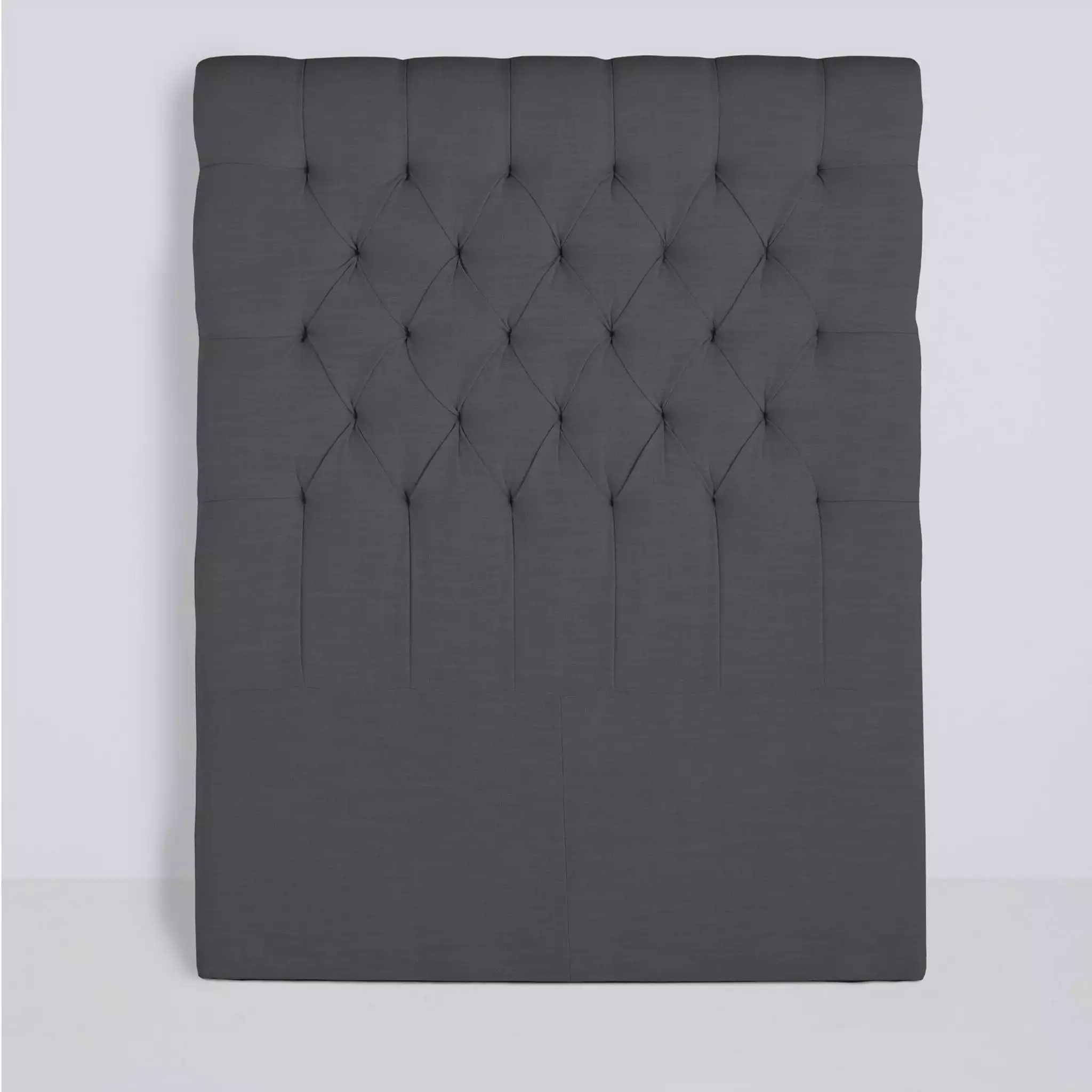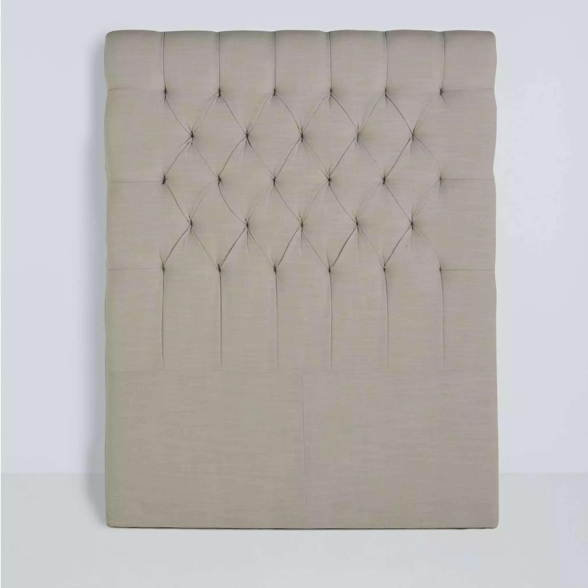 Denna handgjorda sänggavel tillverkas efter beställning och kläs i ett exklusivt och slitstarkt möbeltyg med linnestruktur (70% polyester, 20% linne, 10% bomull). Lintrådarna ger ett fint melerat och naturnära utseende.