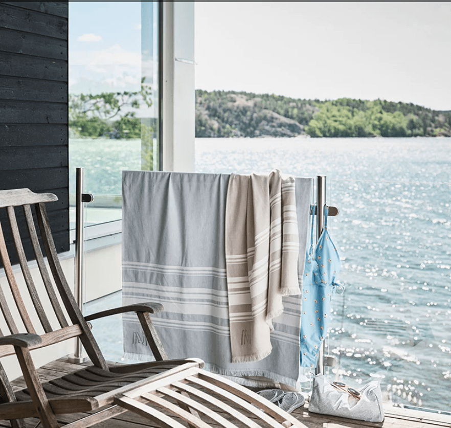 Stort och lyxigt strandbadlakan i stilren design. Tyget är något tunnare för att torka snabbt och för att ta mindre plats i packningen.